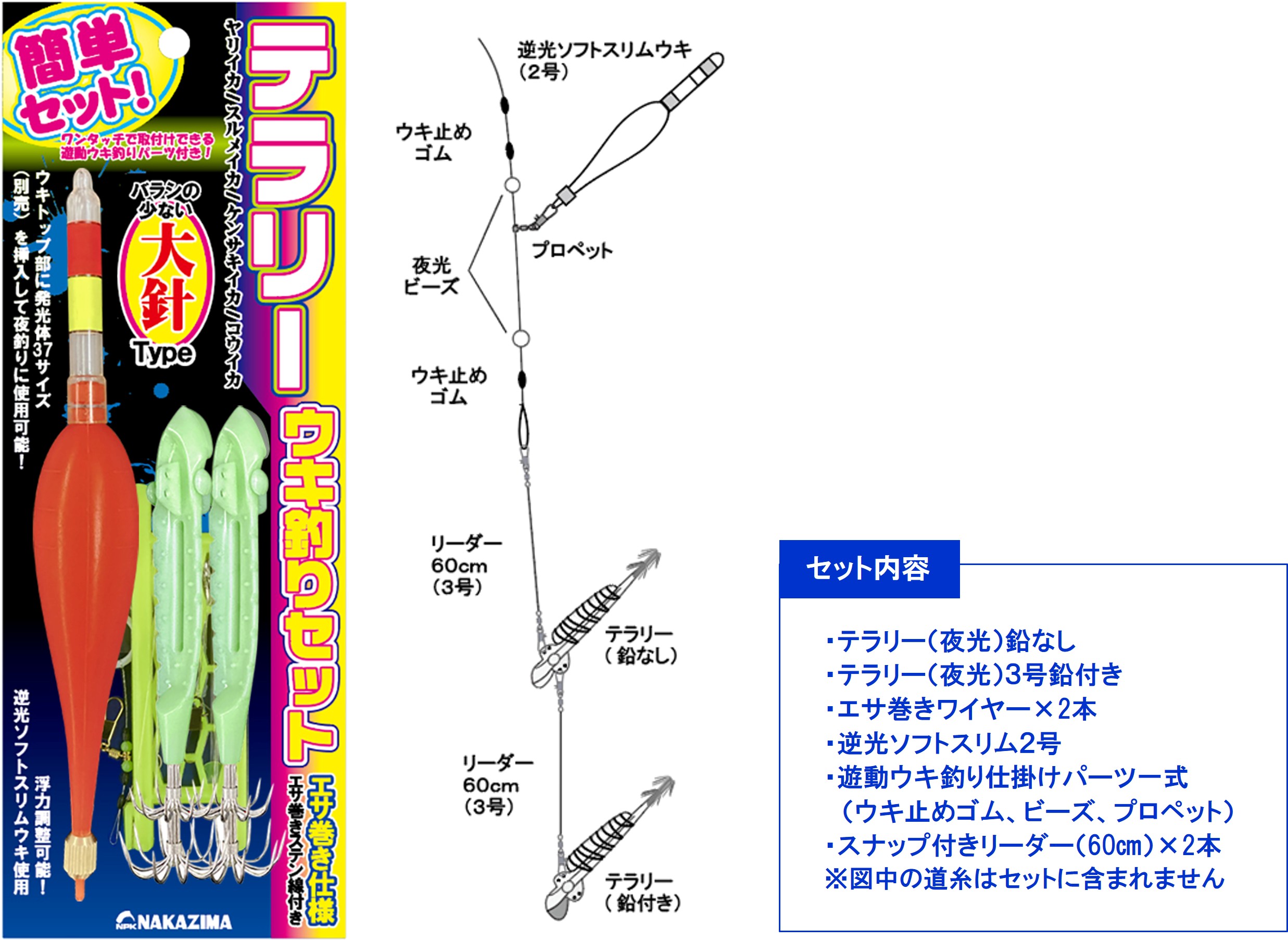- 新型エサ巻きスッテ「テラリー」を使用した、ウキ釣りセットを追加ラインナップ!